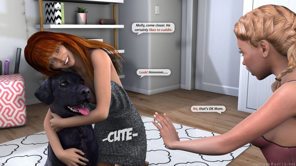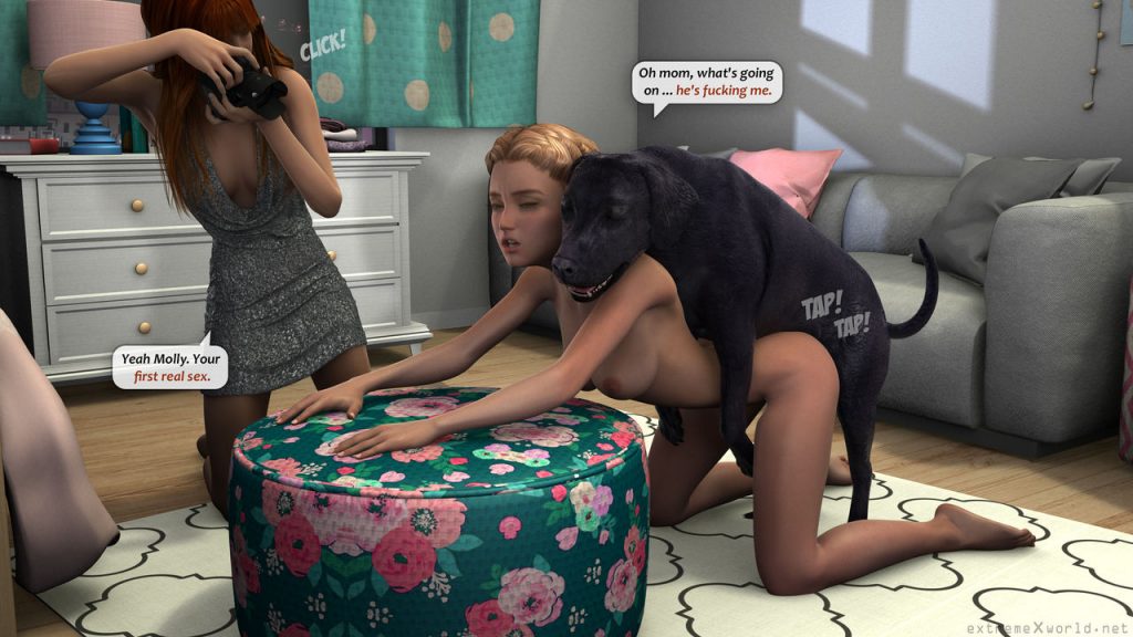 Two good-natured friends having fun and getting lots of sex with their family dog. These two were alone in their bedroom watching video of bitching on the internet when their weasel dog came in and made them happy.