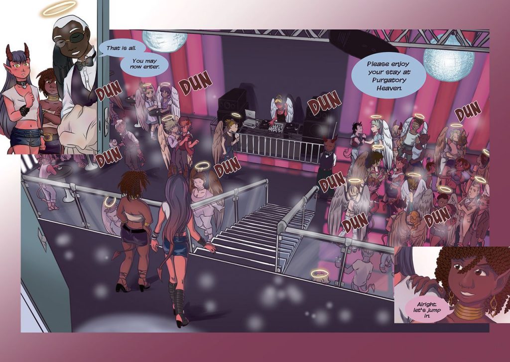 Angels and demons and a very exciting comic with lots of sex and fun. Showing the sensual and pleasurable side of life.