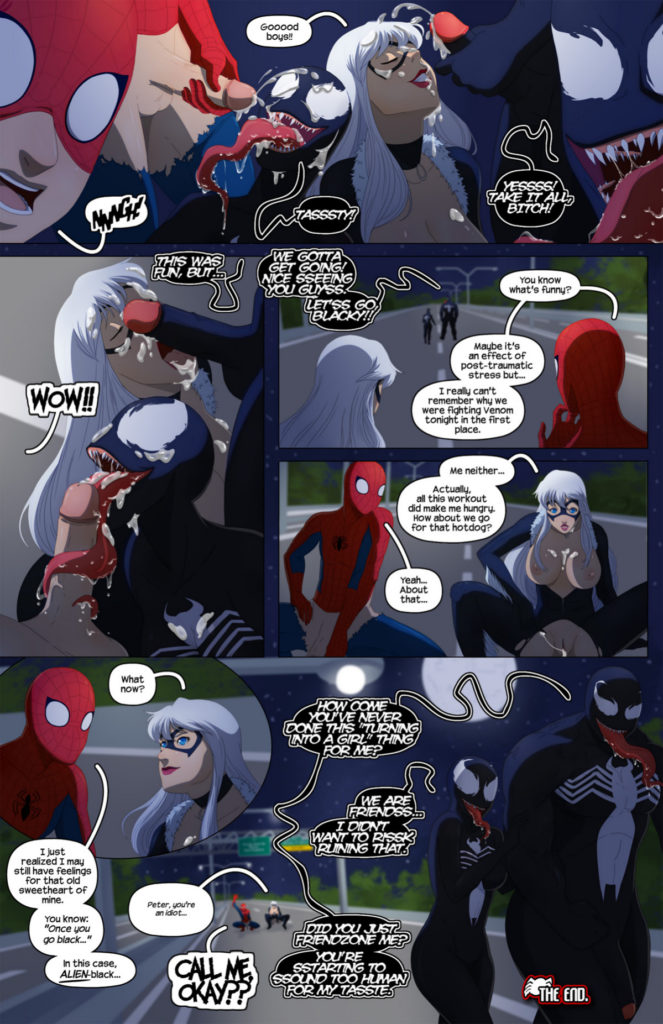 Spiderman and Venom together in this colorful erotic comic book stuffed with good banging, explicit sex and hot scenes with these super heroes frolicking and fucking beautiful hot women.